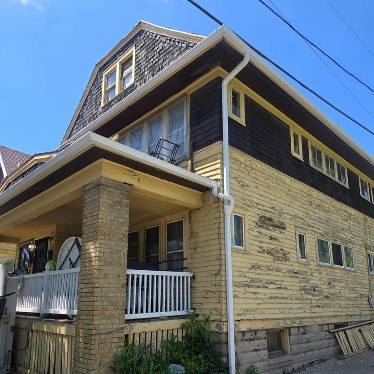 Milwaukee home received a full seamless gutter upgrade to protect against rain, snow, and water damage. Our team at Modern Exterior Roofing removed the old, worn-out gutters and installed a new seamless gutter system with durable downspouts, ensuring efficient water flow away from the home’s foundation, siding, and landscaping.